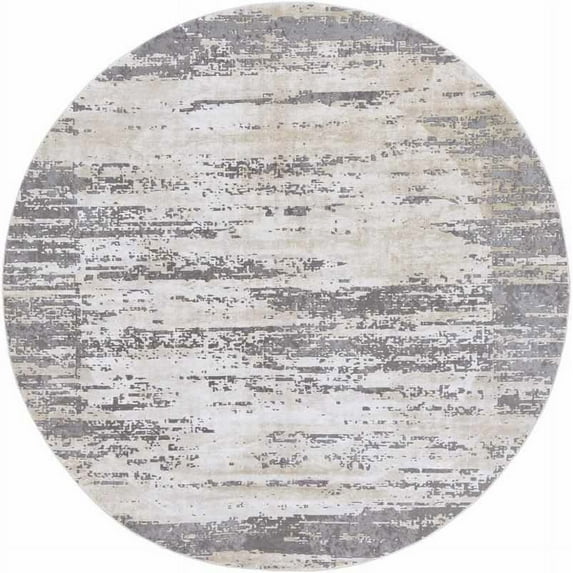 Mark&Day Area Rugs, 5ft Round Arnie Modern Abstract Marble Gray/Khaki Round Area Rug, Tan Beige Grey Marble Swirl Carpet for Living Room, Bedroom or Kitchen (5'3" Round)