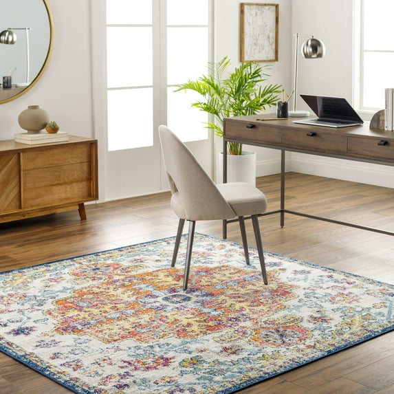 Hero image 0 of Mark&Day Area Rugs, 7x7 Olivia Traditional Saffron/Navy Square Area Rug, Blue Off-White Orange Carpet for Living Room, Bedroom or Kitchen (6'7" Square), 0 of 9