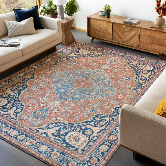 Hero image 0 of Mark&Day Area Rugs, 9x12 Luchen Traditional Dark Blue Area Rug, Blue Orange Brown Carpet for Living Room, Bedroom or Kitchen (9' x 12'), 0 of 9