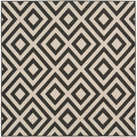 Mark&Day Outdoor Rugs, 7x7 Maya Modern Indoor/Outdoor Black Square Area Rug, Non Shedding Black Beige Carpet for Patio, Porch, Deck, Bedroom, Living Room or Kitchen (7'3" Square)