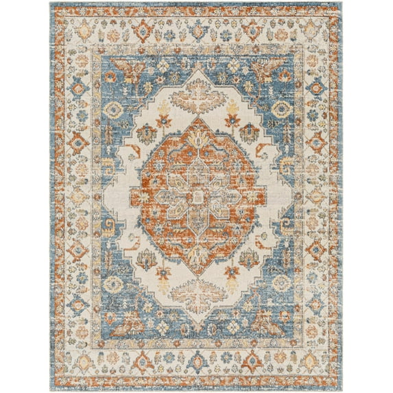 - HOME DECOR : Ensign Traditional Burnt Orange Washable Area Rug can be seamlessly integrated into any existing home decor with Colors: Burnt Orange, Denim, Beige
