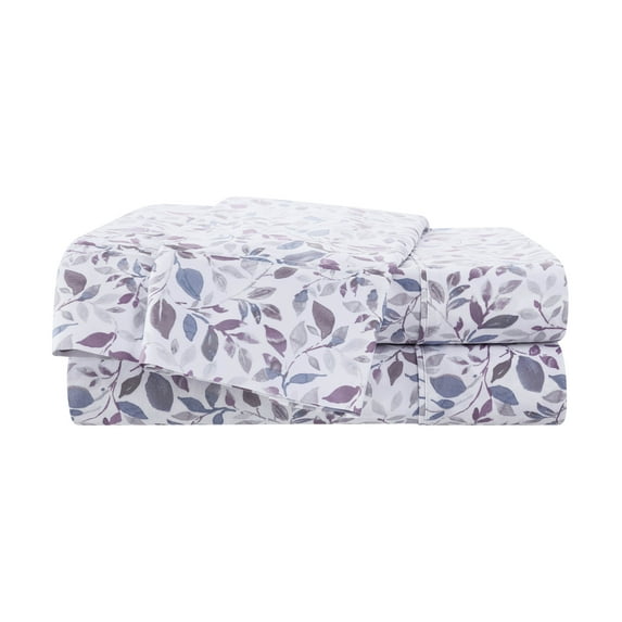 Wrap up in sleek, smooth 100% Cotton sateen with Martex’s 400 Thread Count Watercolor Purple Printed Sheet Sets. These 400 thread count sheets and pillowcases feature a soft, silky feel and resist wrinkles. With a lustrous sheen, they flaunt a bold botanical print — a painterly abstract vine and leaf motif — that complements almost any bedroom décor. For more than 50 years, heritage brand Martex has represented loving families and the brand creates items for discerning consumers who demand high-quality products with style. The Martex 400 Thread Count fitted sheets have all around elastic for a snug fit. The Twin sheet set includes a single standard pillowcase with fitted and flat sheets.