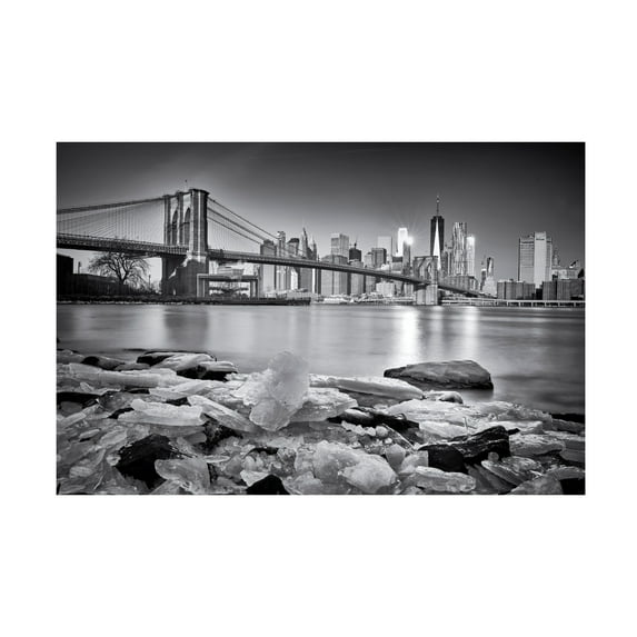 Artist: Martin FroydaSubject: CityscapeStyle: Modern & ContemporaryProduct Type: Gallery-Wrapped Canvas ArtA This ready to hang, gallery-wrapped art piece features a black and white image of the Brooklyn bridge with Manhattan in the background. Prominent Colors: White, Grey, Black 1x is not your average photo site. All photos on 1x are selected by a team of professional gallery curators, just like in a real photo gallery. Our curators have experience from well known institutions such as Sotheby s and Tate Modern Art. We believe that everyone has an inner photographer, just waiting to be discovered. Getting published on 1x is a great achievement many photographers whose works now hang in art galleries were once discovered on 1x. Its no coincidence that art directors, book editors, and magazines all over the world use photos from 1x photographers. Giclee (jee-clay) is an advanced printmaking process for creating high quality fine art reproductions. The attainable excellence that Giclee printmaking affords makes the reproduction virtually indistinguishable from the original piece. The result is wide acceptance of Giclee by galleries, museums, and private collectors. Gallery wrap is a method of stretching an artist's canvas so that the canvas wraps around the sides and is secured a hidden, wooden frame. This method of stretching and preparing a canvas allows for a frameless presentation of the finished painting. Whether it's a contemporary, rustic, modern, or traditional style decor, Trademark Fine Art offers a variety of high-quality, carefully built wall art that will surely complement any style. We provide an abundance of art themes that range from fascinating abstracts to breathtaking landscapes. With an assortment of sizes and styles such as Framed, Matted Framed, Panel, Aluminum, Wood Canvas or other mediums, our art will certainly bring excitement to any area of your home. From the bedroom, to the living room, or even the office, Trademark Fine Art makes professionally handcrafted, ready to hang wall decor that will be admired for years to come!IMPORTANT: Avoid buying counterfeit products and transacting with unauthorized sellers. Look for our logo on the packaging for every one of our products. Trademark Fine Art is committed to providing the consumer with the absolute best price and value on our entire line of products, which we ensure by applying a rigorous Quality Control process. Trademark Fine Art is a registered trademark protected by . Trademark law and will be vigorously defended.
