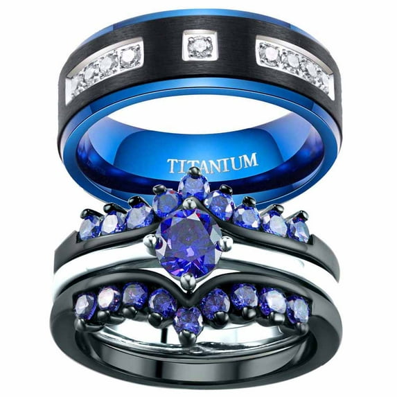 Matching Rings His and Her Rings Couple Rings 1ct Blue CZ Wedding Ring Sets Wedding Band
