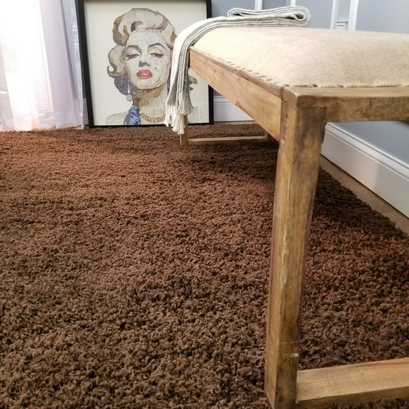 Maxy Home Bella Solid Brown 5 ft. x 7 ft. Shag Area Rug