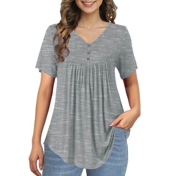 Hero image 0 of McVanedy Women's Pleated Flare Top V Neck Button Plus Size Short Sleeve Top M-4XL, 0 of 9