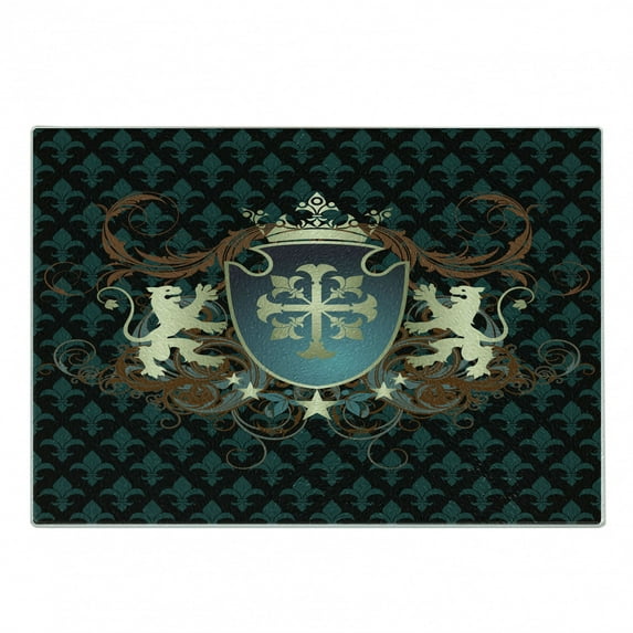 Hero image 0 of Medieval Cutting Board, Heraldic Design from Middle Ages Coat of Arms Crown Lions and Swirls, Decorative Tempered Glass Cutting and Serving Board, Small Size, Teal Black Cinnamon, by Ambesonne, 0 of 1