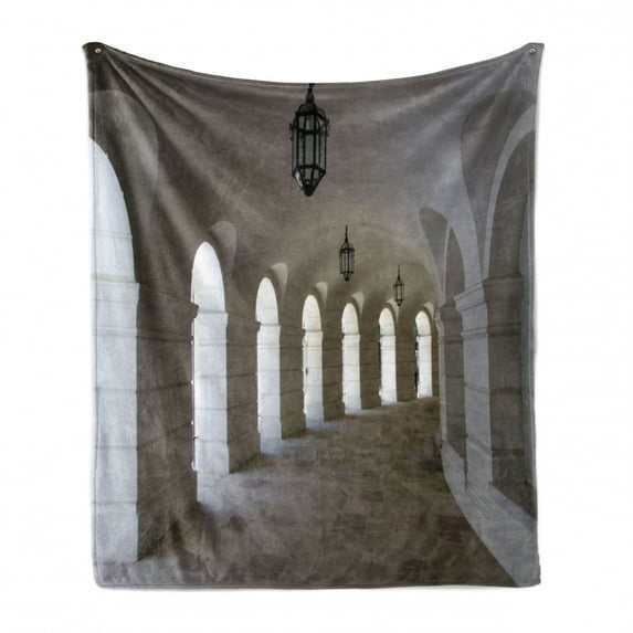 Hero image 0 of Medieval Soft Flannel Fleece Throw Blanket, Middle Ages Buildings Corridor Arches and Lanterns Architectural Classical Artwork, Cozy Plush for Indoor and Outdoor Use, 60" x 80", White, by Ambesonne, 0 of 6