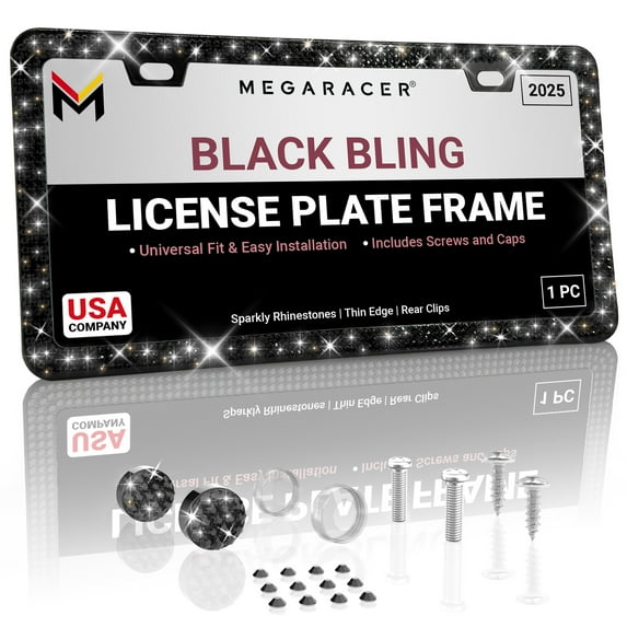 Mega Racer Black Bling License Plate Frame 1 PACK - Premium Crystal Diamond Rhinestones, 2 Holes Stainless Steel, WeatherproofMega Racer Black Bling License Plate Frame 1 PACK Premium Crystal Diamond Rhinestones 2 Holes Stainless Steel WeatherproofMega Racer Black Bling License Plate Frames 2 PACK Premium Crystal Diamond Rhinestones 2 Holes Stainless Steel WeatherproofMega Racer USA American Flag Bling License Plate Frame Red White Blue Premium Crystal Diamond Rhinestones 2 Holes Stainless Steel Weatherproof Pack 1Mega Racer Pink Bling License Plate Frames Crystal Diamond Rhinestones Stainless Steel 2 Holes with Mounting Screws Pack of 2Mega Racer White Bling License Plate Frames for Women 2 PACK Premium Crystal Diamond Rhinestones 2 Holes Stainless SteelMega Racer White Bling License Plate Frame 1 PACK Premium Crystal Diamond Rhinestones 2 Holes Stainless Steel WeatherproofMega Racer Pink Bling License Plate Frame 1 PACK Premium Crystal Diamond Rhinestones 2 Holes Stainless Steel Weatherproof