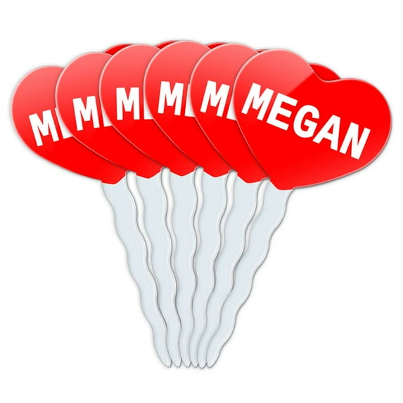Megan Heart Love Cupcake Picks Toppers - Set of 6