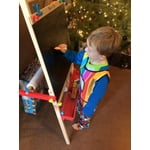 The Melissa & Doug Deluxe Art Easel makes any room into an art studio! Our double-sided, kid-sized art easel includes a dry-erase board, chalkboard, locking paper-roll holder (fits either an 18" or 12" wide paper roll), child-safe paper cutter, four easy-grip clips, and a plastic tray to attach to each side of the easel. It's easy to assemble, so there's little time waiting for the next masterpiece! Children's easels are recommended for building fine motor skills and proper pencil grip -- it's great for beginning writers! Use the chalkboard and white board as the ideal practice surfaces for a child's first letters and words. The easel features a sturdy wooden frame, folds flat for storage, and the height is adjustable so kids can create in comfort. The wooden easel makes a great gift for kids ages three and older for hands-on, screen-free play. (Paint, paint cups, and paint brushes sold separately.) This product is certified by the Forest Stewardship Council. FSC certification ensures that products come from responsibly managed forests that provide environmental, social, and economic benefits, and that forests are protected for future generations. Please note that FSC certification applies to new inventory only (FSC C156584)