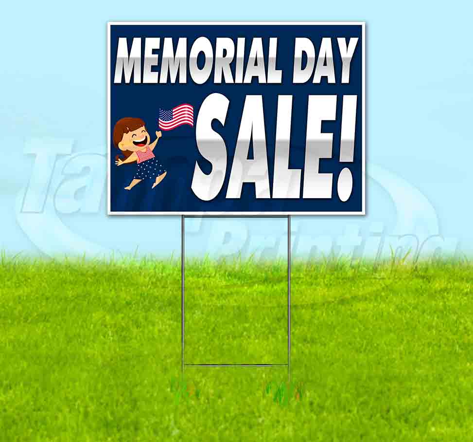 Memorial Day Sale (18" x 24") Yard Sign, Includes Metal Step Stake
