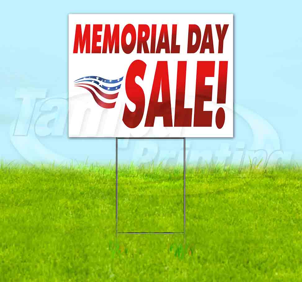 Memorial Day Sale (18" x 24") Yard Sign, Includes Metal Step Stake
