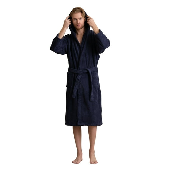 - Tailored Elegance: Elevate your loungewear with this men's luxe cotton terry hooded robe, offering a tailored and sophisticated silhouette that exudes timeless elegance.