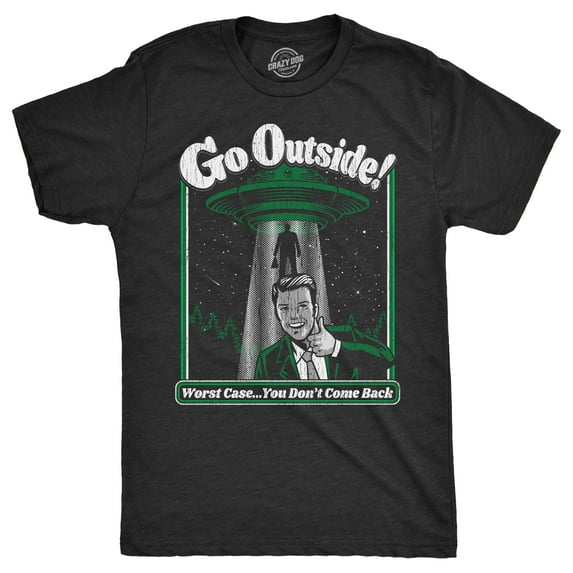 Mens Go Outside T Shirt Funny Alien UFO Nature Outdoors Lovers Joke Tee for Guys Graphic Tees