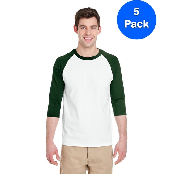 Mens Heavy Cotton ¾-Sleeve Raglan 5 Pack