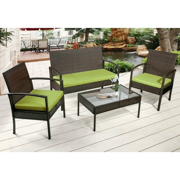 Merax 4-Piece Outdoor Rattan Furniture Set Patio Wicker Cushioned Set Garden Sofa Set(Green Cushion)Merax 4 Piece Outdoor Rattan Furniture Set Patio Wicker Cushioned Set Garden Sofa Set Green CushionMerax 4 Piece Outdoor Rattan Furniture Set Patio Wicker Cushioned Set Garden Sofa Set Beige Cushion