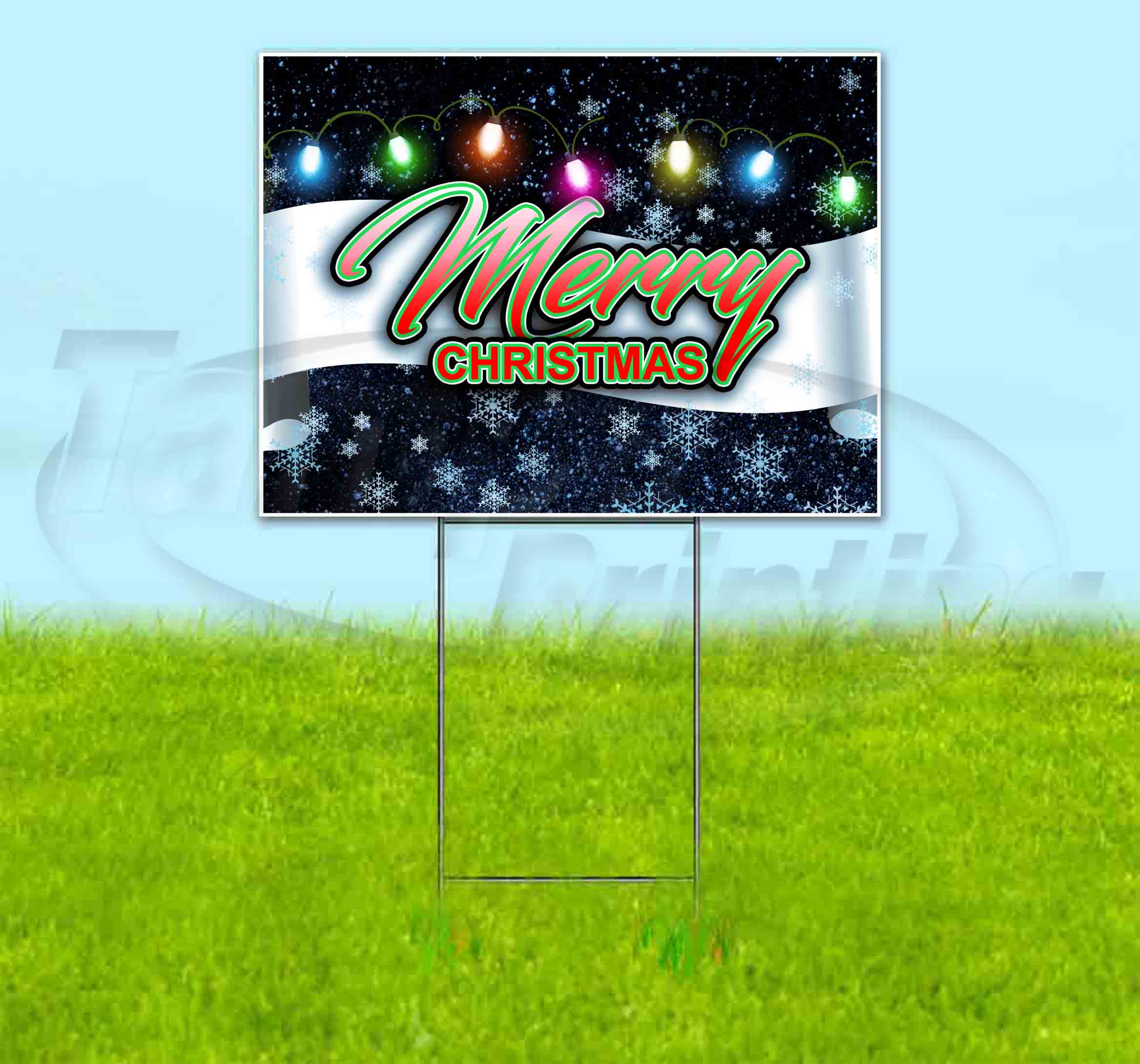 Merry Christmas Ribbon (18" X 24") Yard Sign, Includes Metal Step Stake