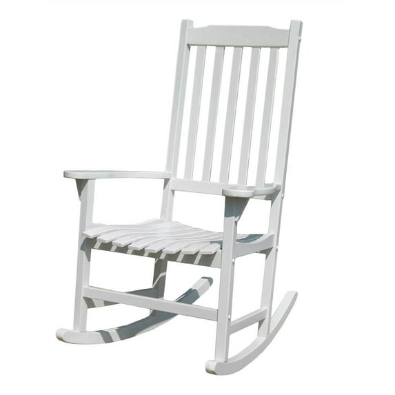Transform your decor with this Traditional Rocking Chair. It features a classic and stylish look that easily fits in with almost any home decor style. It is made out of Acacia Hardwood painted white with a slatted seat and back. Suitable for indoor and outdoor use, it's easy to assemble and comes with all the hardware and instructions included. This wood rocking chair is an ideal addition to your patio, front or back porch, living room, screened in porch and more. It lets you sway back and forth inside or out while the armrests provide extra relaxation. This Traditional Rocking Chair gives any space an updated and refreshing look.