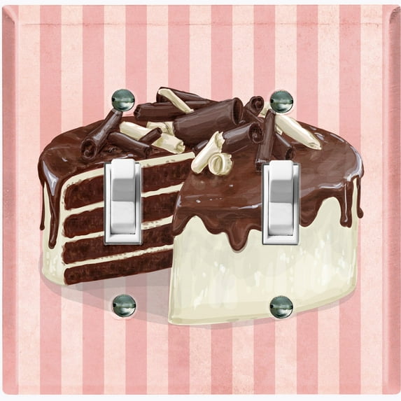 Metal Light Switch Plate Cover Chocolate Vanilla Cake Striped Wallpaper Pink CAK061