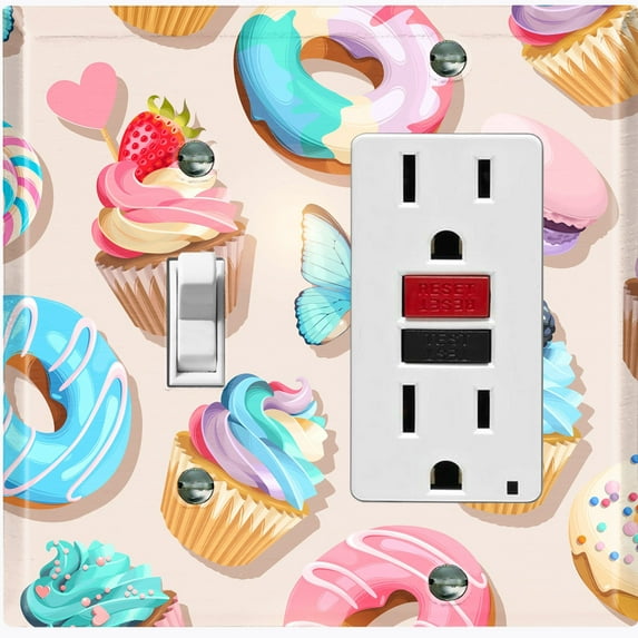 Hero image 0 of Metal Light Switch Plate Cover Colorful Doughnut Cupcake Ice Cream Collage Beige CAK043, 0 of 13