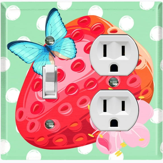 Metal Light Switch Plate Cover Floral Strawberry Butterfly Green Polka Dots FUT007