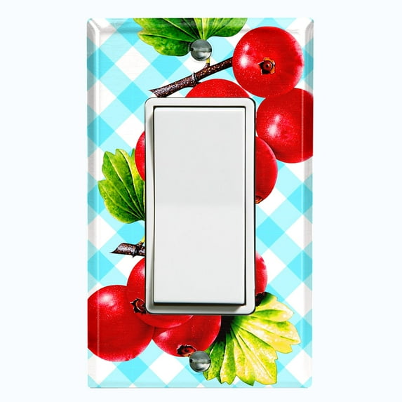 Metal Light Switch Plate Cover Gingham Cranberry Fruit Leaf Picnic Blue FUT001