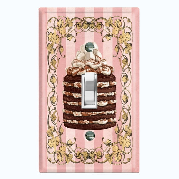 Metal Light Switch Plate Cover Naked Marshmallow Chocolate Cake Striped Wallpaper Pink CAK056