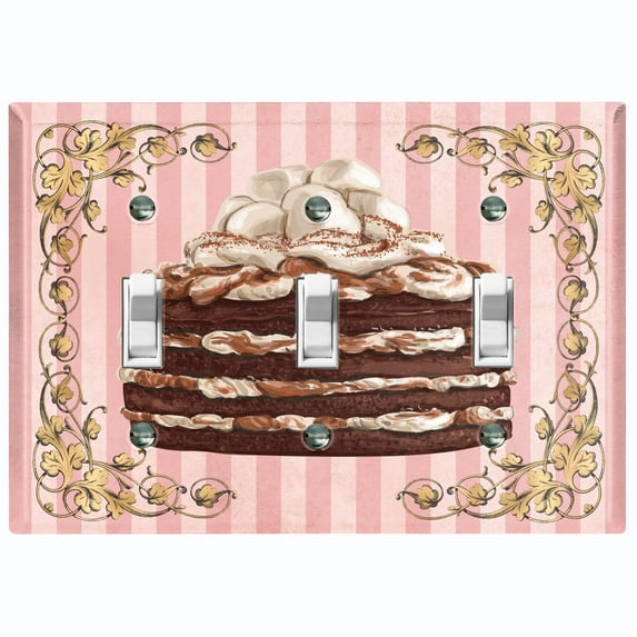 Metal Light Switch Plate Cover Naked Marshmallow Chocolate Cake Striped Wallpaper Pink CAK056