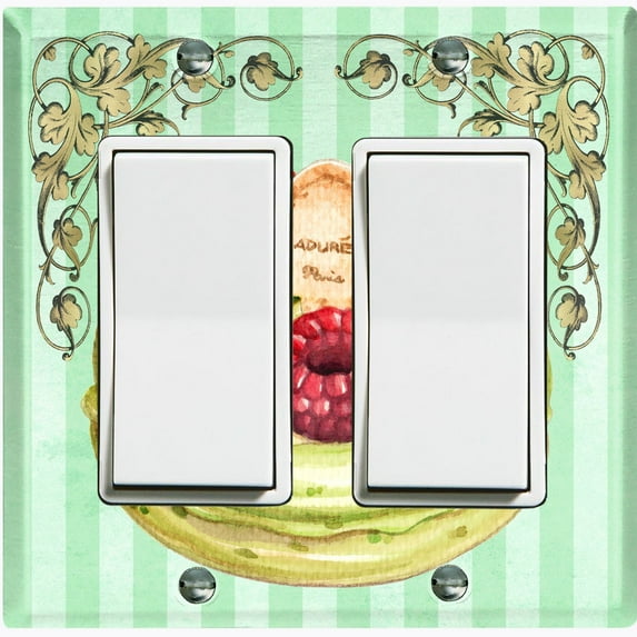 Metal Light Switch Plate Cover Pistachio Green Fruit Cake Striped Wallpaper CAK050