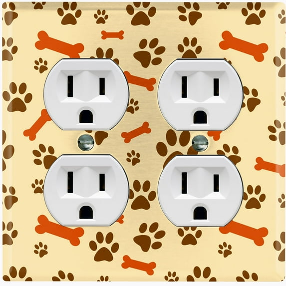 Metal Light Switch Plate Cover Puppy Dog Paw Print Bones Orange Beige DOG043
