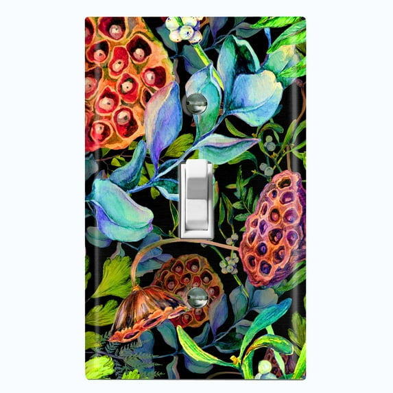 Hero image 0 of Metal Light Switch Plate Cover Red Lotus Pod Plant Leaves Green FLW023, 0 of 36