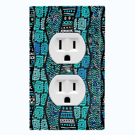 Hero image 0 of Metal Light Switch Plate Cover Safari African Tribal Art Pattern Teal SFR002, 0 of 13