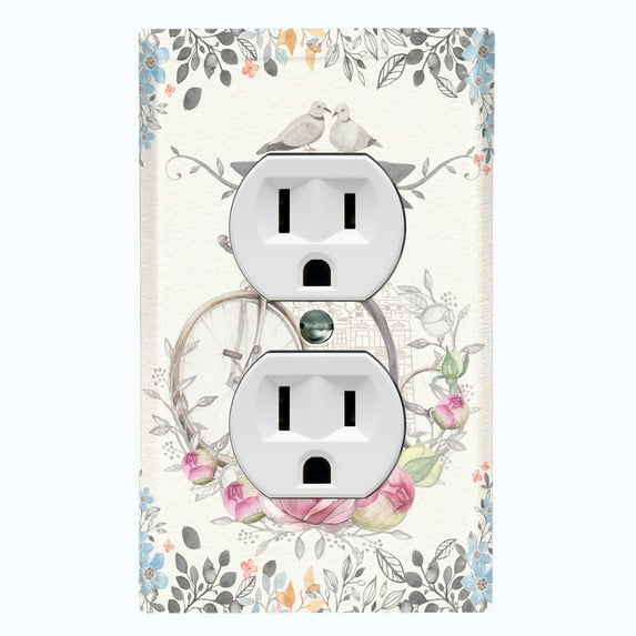 Hero image 0 of Metal Light Switch Plate Cover Vintage Retro Postal Floral Bicycle Card FLW124, 0 of 13
