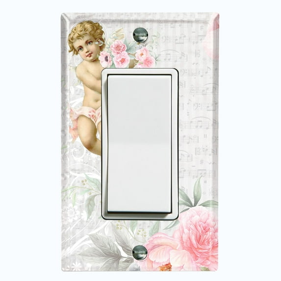 Metal Light Switch Plate Outlet Cover Musical Floral Cupid Striped Wallpaper Green AGL001
