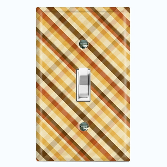 Metal Light Switch Plate Outlet Cover Yellow Orange Brown Plaid Wallpaper WAL032