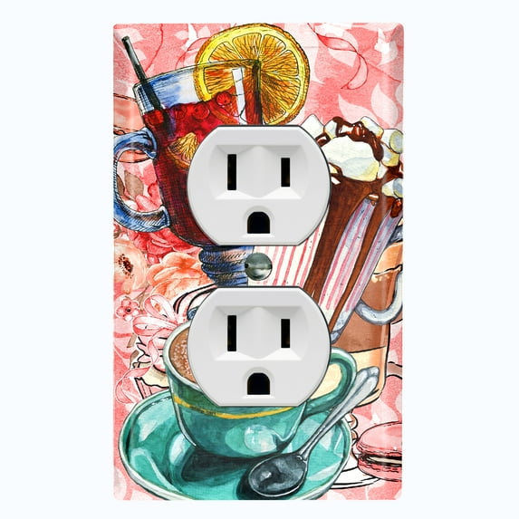 Hero image 0 of Metal Light Switch Wall Plate Outlet Cover (Coffee Beans Mocha Tea Marshmallow Treat Pink White Leaves - Single Duplex), 0 of 2