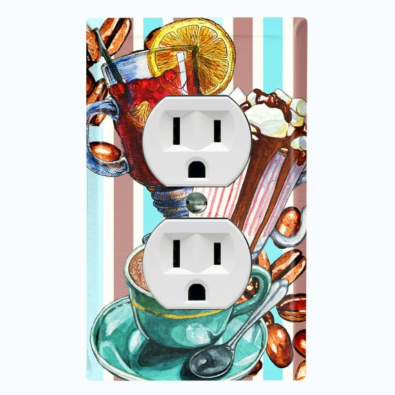 Hero image 0 of Metal Light Switch Wall Plate Outlet Cover (Coffee Beans Mocha Tea Marshmallow Treat Stripe Teal Brown - Single Duplex), 0 of 2