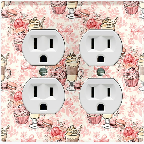 Hero image 0 of Metal Light Switch Wall Plate Outlet Cover (Coffee Mocha Espresso Chocolate Shake Cupcake Macaron Flower Bouquet Pink Bow - Double Duplex), 0 of 2