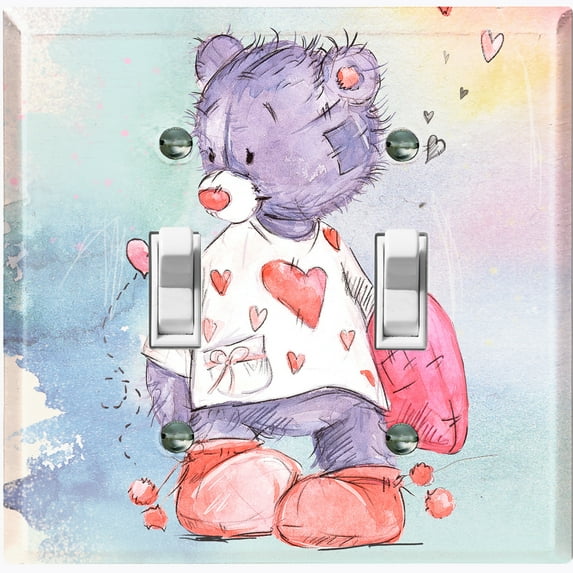 Hero image 0 of Metal Light Switch Wall Plate Outlet Cover (Love Friend Purple Teddy Bear Heart Pillow - Double Toggle), 0 of 2