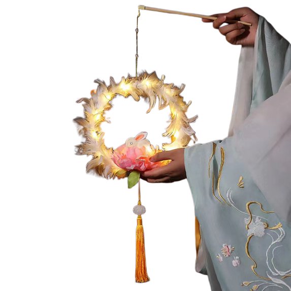 Michellecmm Kids Adults Handheld DIY Lantern Lights Jade Rabbit Feather Tassel Battery Powered Chinese Lanterns Craft KitsMichellecmm Kids Adults Handheld DIY Lantern Lights Jade Rabbit Feather Tassel Battery Powered Chinese Lanterns Craft Kits