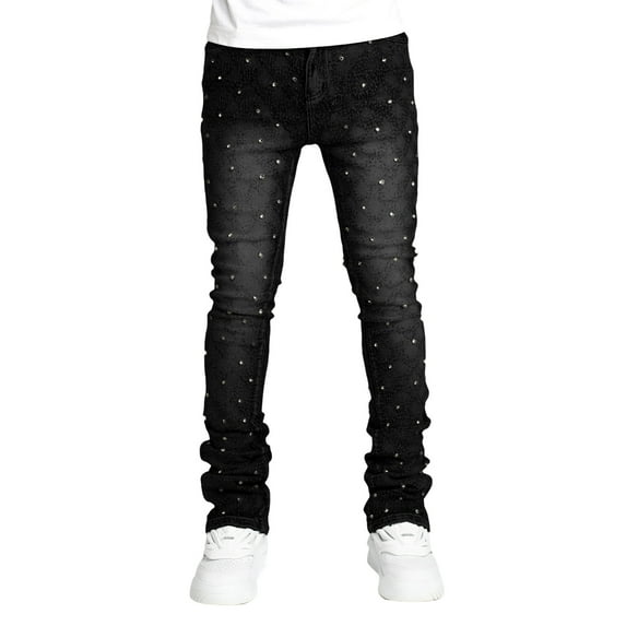 Hero image 0 of Michellecmm Men Skinny Jeans Fashion Rhinestone Denim Pants with Pockets, 0 of 4