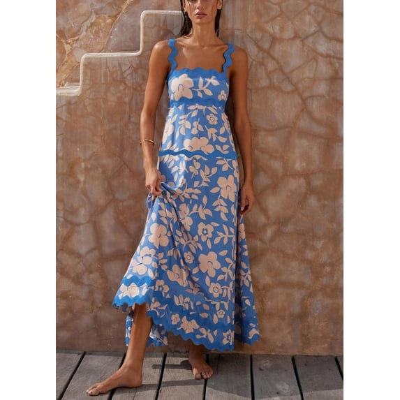 - Features: Womens long dresses featuring square neck, sleeveless, backless, ric rac shoulder straps, large flowy hem and contrasting ric rac design for a chic look.