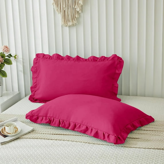 Grace Linen Ruffle Pillow Shams Standard King Size Set of 2, 20X36 - Microfiber Soft & Breathable & smooth - Ruffle Pillowcases 20X36 - Hot Pink
