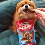 $3992current price $39.92(4 pack) Milk Bone Mini Comfort Chews, Dog Chews with Unique Chewy Texture and Real Beef, 22.2 oz Bag of 18 Chews