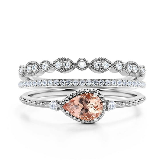 Hero image 0 of Minimalist 2.10 Carat Pear Cut Morganite And Diamond Moissanite Classic Engagement Ring, Modern Wedding Ring in 10k Solid White Gold, Promise Ring, Dainty Ring, Anniversary Ring, Trio Rings Set, 0 of 3