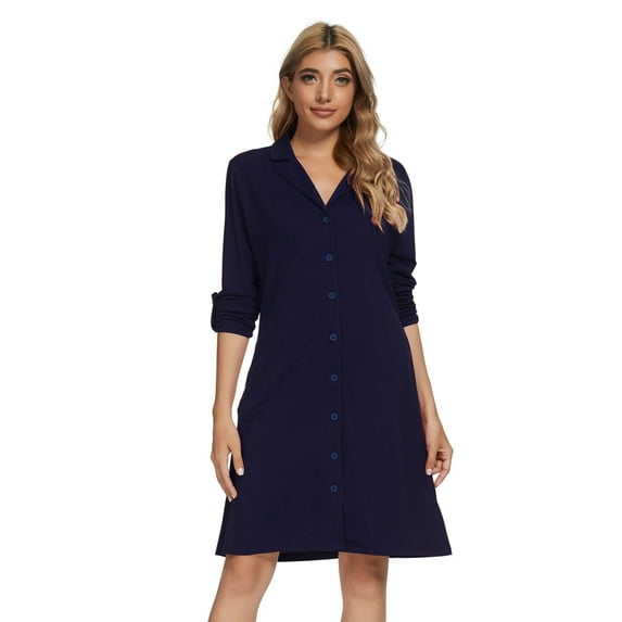 Hero image 0 of MintLimit Women's Button Down V-neck Solid Long Sleeve Sleepwear with Pockets Shirt Dress Pajamas, 0 of 5