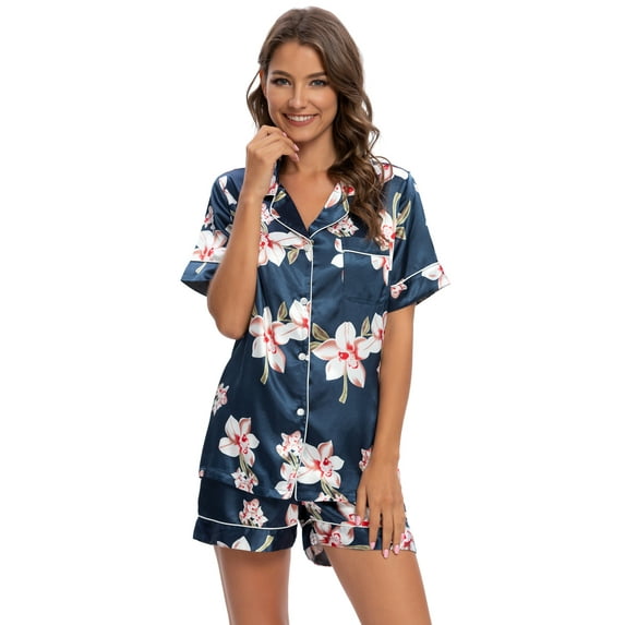 MintLimit Women's Stain Silky Pajamas Set Button Down Floral Short Sleeve Shirt and Shorts Sleepwear Nightwear Soft Lounge SetMintLimit Women s Stain Silky Pajamas Set Button Down Floral Short Sleeve Shirt and Shorts Sleepwear Nightwear Soft Lounge Set