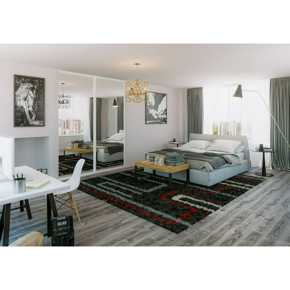 Shipping, arrives in 3+ daysReduced price Quadro 4522 Matte Black 56-in x 80-in with Clear Glass Sliding Closet Barn Bypass Doors | Sturdy 6.6ft Rails Hardware Set | Wood Solid Bedroom Wardrobe Doors $1,092.00 Was $1,352.00