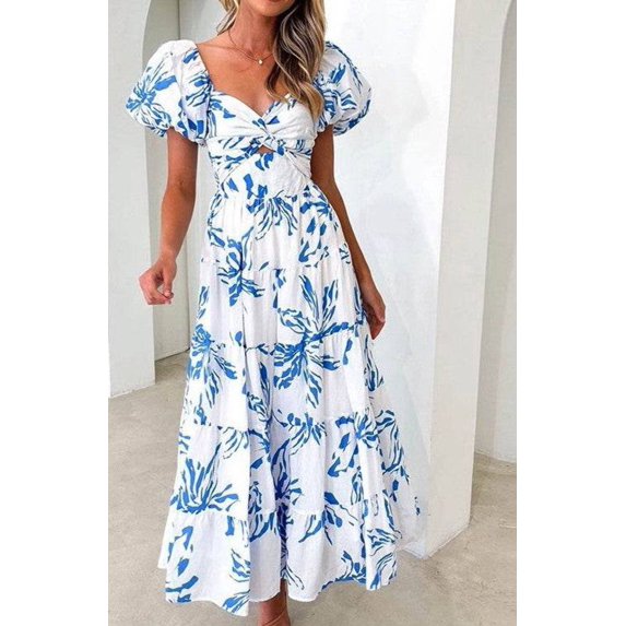 $7499current price $74.99Women Dresses Cutout Back Floral Sweetheart Neck Puff Sleeve Dress, Women's L